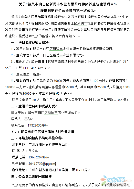 正文摘要:關(guān)于“韶關(guān)市曲江區(qū)新潤豐農(nóng)業(yè)有限公司種豬養(yǎng)殖場建設(shè)項目”環(huán)境影響評價公眾參與第一次公示 |