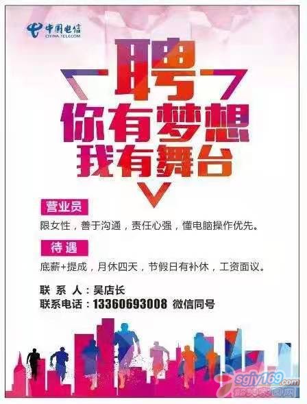 招聘電信營業(yè)員,業(yè)務(wù)員各兩名