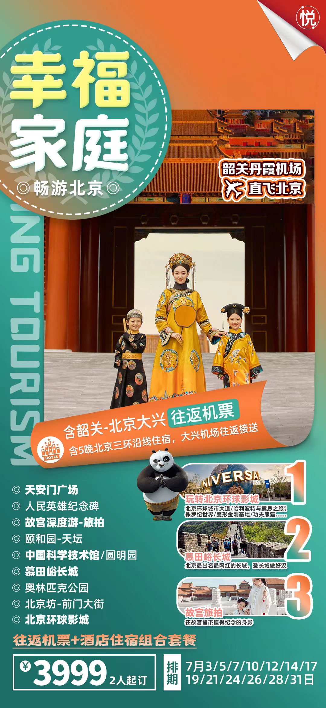 出發(fā)日期:7月31日,8月2、4、7、9、11、14、16、18、21、23、25、28、30日均可預(yù)定,實惠的旅游團隊機票+實惠的團購酒店組合;附帶贈送大興機場往返酒店的接送服務(wù);向往的北京自由行之旅+實惠的旅游團隊價格的結(jié)合,精明的你值得擁有;